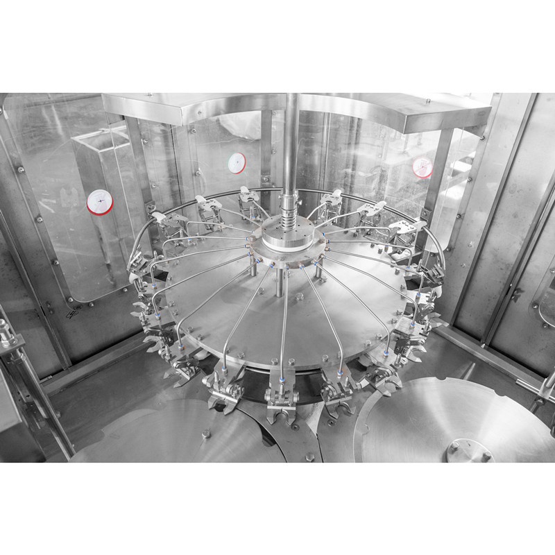 XGF14-12-5三合一灌裝機主要用于礦泉水、純凈水的灌裝作業(yè)。本機將沖洗、灌裝、旋蓋三功能合在一個機體上,全過程實現(xiàn)自動化。適用于聚酯瓶、塑料瓶,各部分的適用瓶型調(diào)整采用手柄轉動實現(xiàn),輕松自如,簡便快捷。灌裝方式采用了新型的常壓灌裝,使灌裝速度更快更穩(wěn)定,所以與同規(guī)格的機器相比本機的產(chǎn) 量更高,效益更大。本機采用了先進的可編程控制器(PLC)控制機器的自動運行,進瓶鏈道采用變頻器調(diào)整,與主機變頻器相互配合使進瓶運行更穩(wěn)定可靠,光電檢測各部件的運行狀況。自動化程度高,操作簡便。是礦泉水、純凈水生產(chǎn)廠家理想的首先設備。